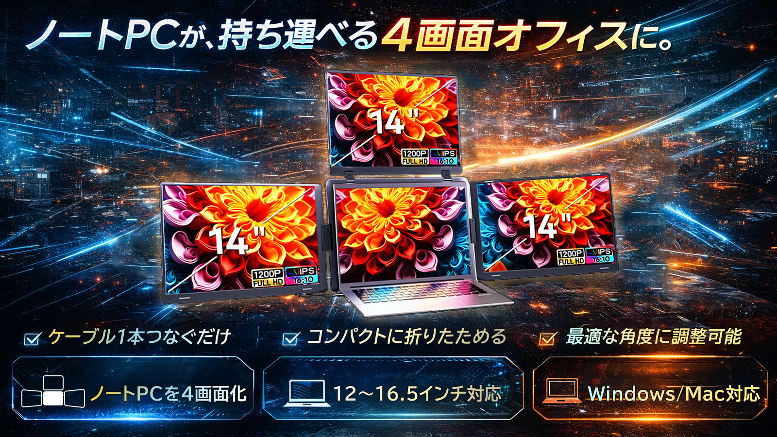 ノートPCが最大4画面に。折りたたみ式トリプルモニター「FOPO S780Pro」がMakuakeで3月19日18時公開