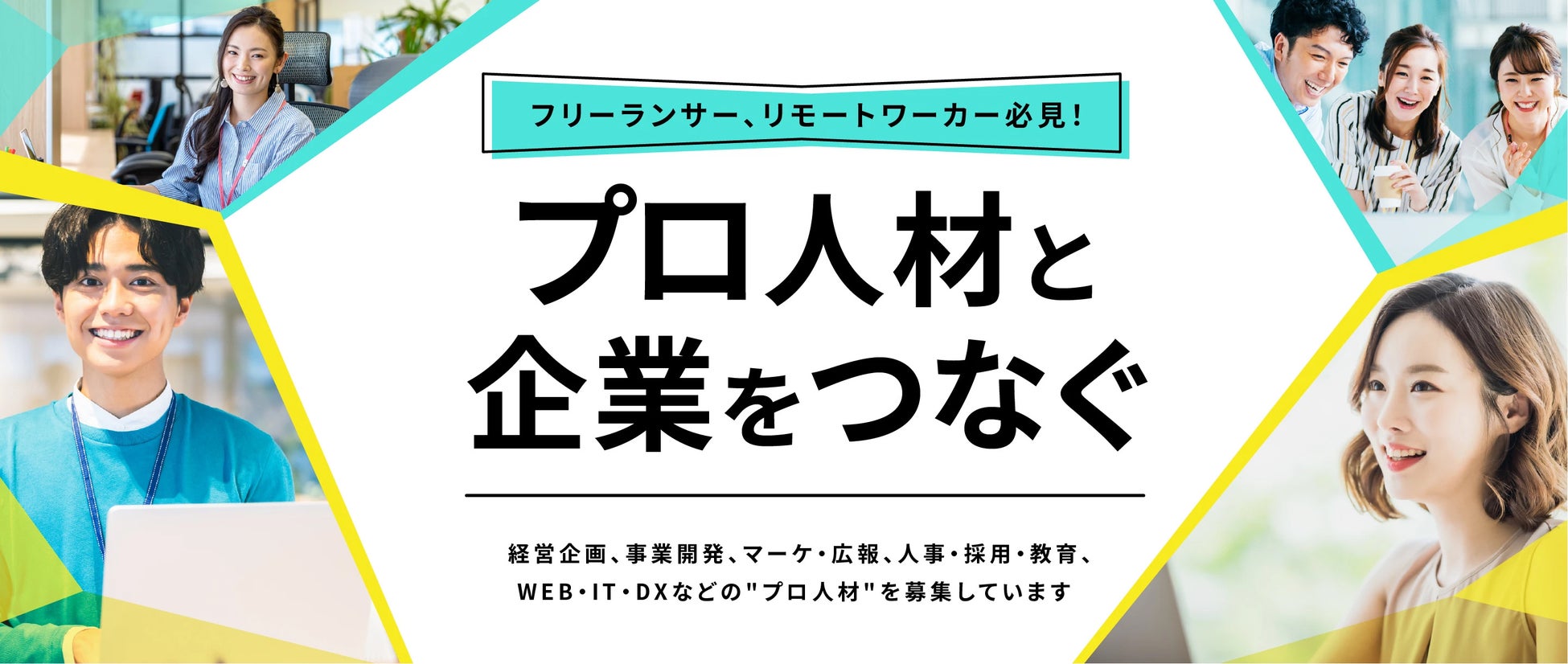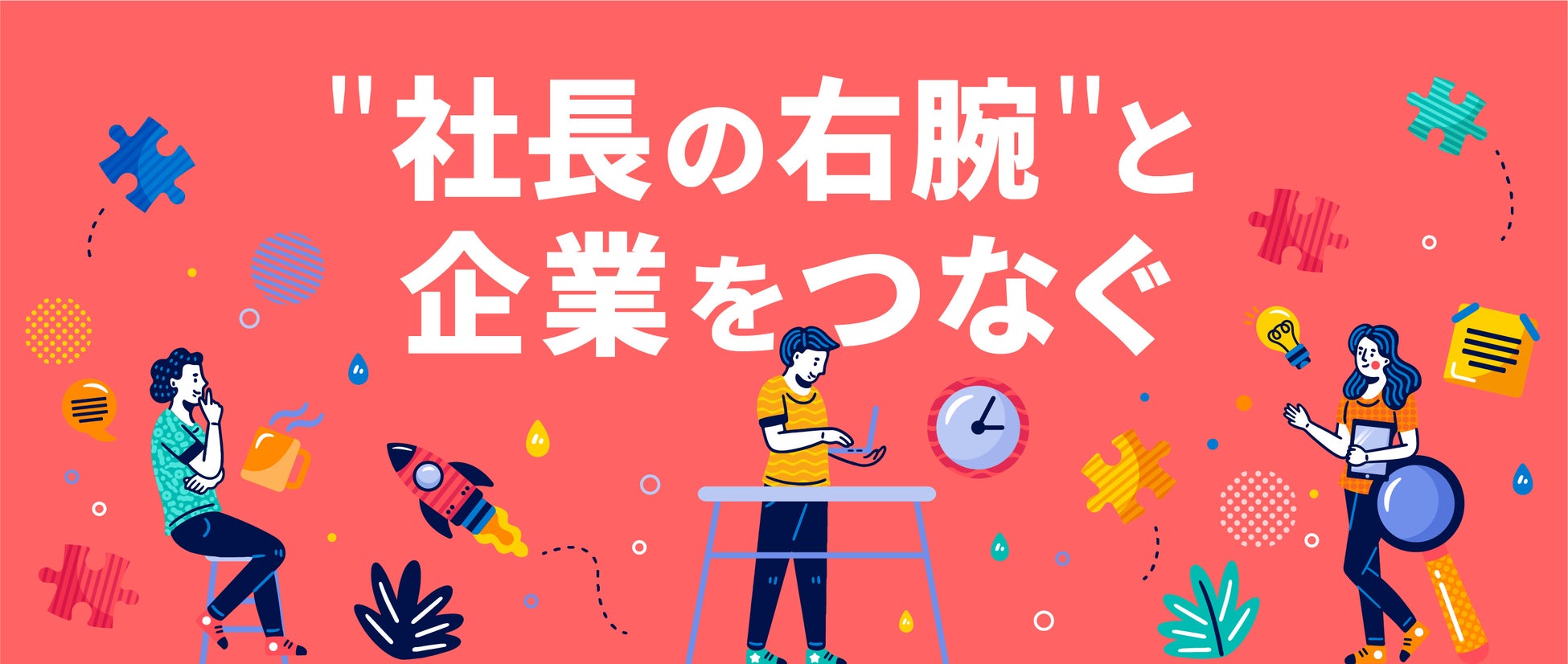 「社長の右腕」として中小・ベンチャー企業に貢献できるプロ人材の募集を開始いたしました。フリーランス、リモートワーク、副業の方を歓迎しています。当社サービスにご登録いただくことにより、自分の経験・スキルを生かせる企業と出会うことができます。詳しくは、下記をご覧ください。
