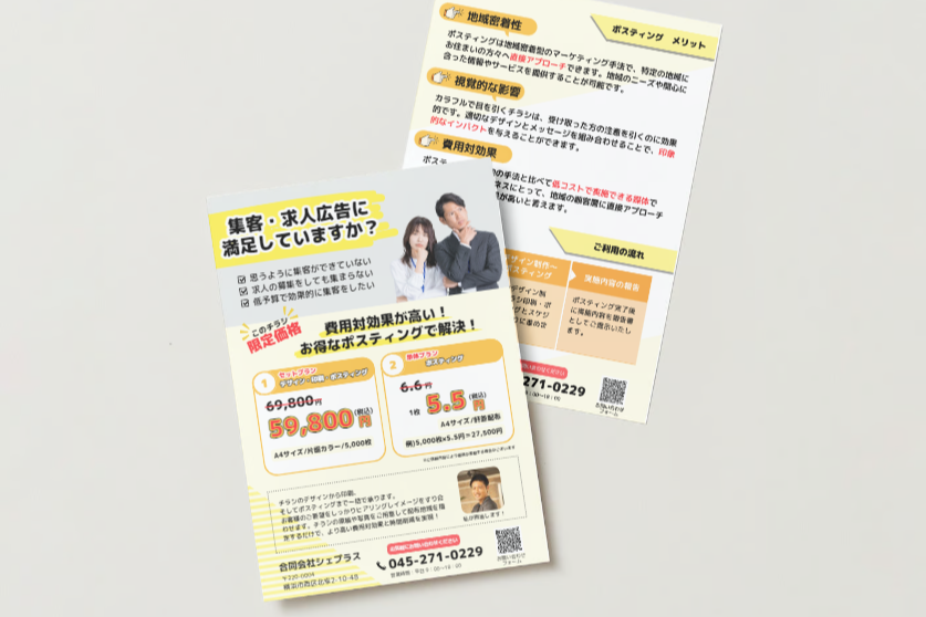 Web制作だけでなく、チラシのデザインから印刷・ポスティングまでを一貫して対応。