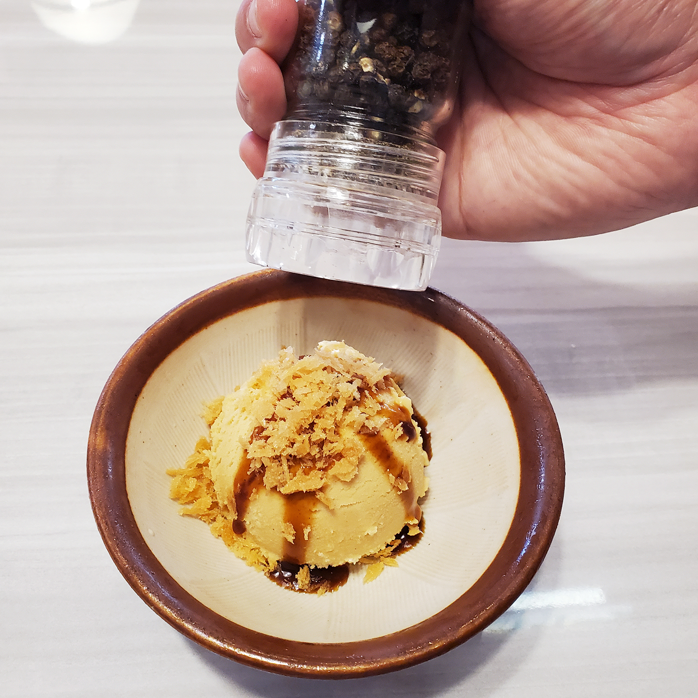 この「醤蔵」は、クックファンの牛かつに添える3種のタレの一つとしても使用しており、今回のアイス開発でも味をまとめる“縁の下の力持ち”的存在になりました。