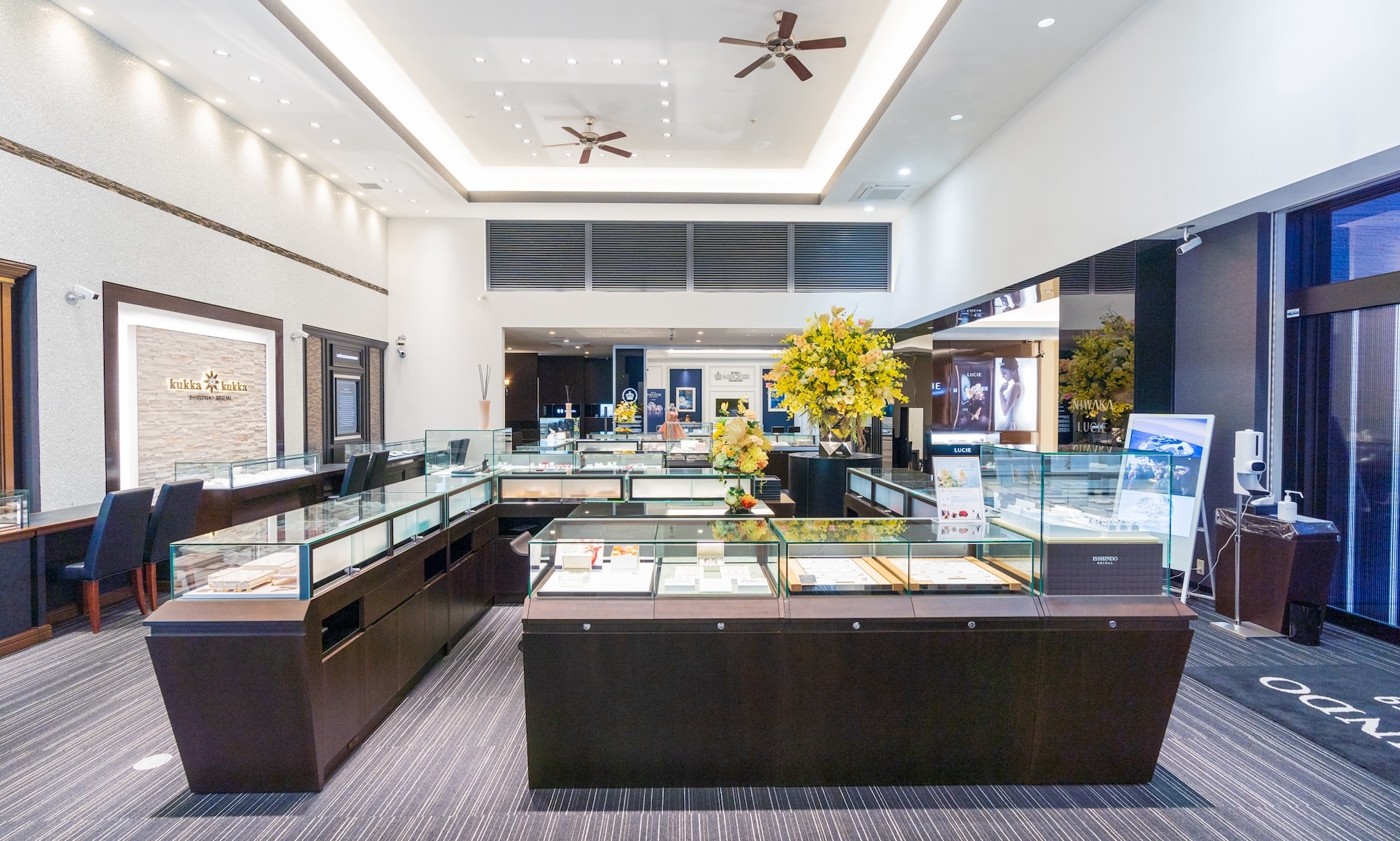 一真堂 桜木インター店は、ロイヤル・アッシャーの最高位のショップ「コンセプトショップ」に認定されています。その白く明るい輝きを、ぜひ店頭でご体感ください。