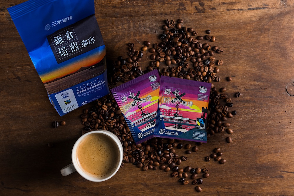 開発途上国の生産者から適正な価格で調達したフェアトレード認証コーヒー豆を使用し、三本珈琲株式会社 鎌倉総合工場で焙煎・パッケージングを行っています。鎌倉の歴史や文化をイメージした味わいが特徴で、2024年8月より全国の主要量販店などで販売されています。