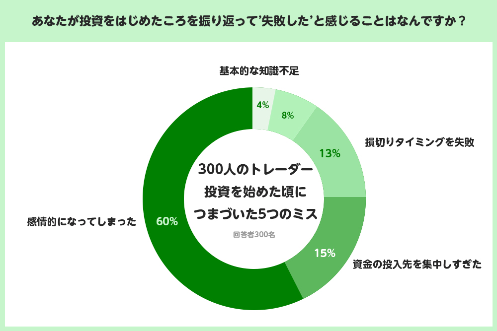 Song LLCは、投資歴3年以上のトレーダー300人を対象に「投資初心者が陥りがちな5つのミスとその回避法」に関する最新調査を実施しました。