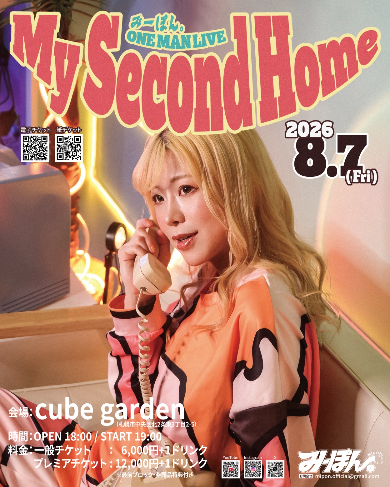 みーぽん。の次の目標はZeppSapporo公演の最後に発表された2026年8月7日(金)cube garden(札幌市)でのワンマンライブ。