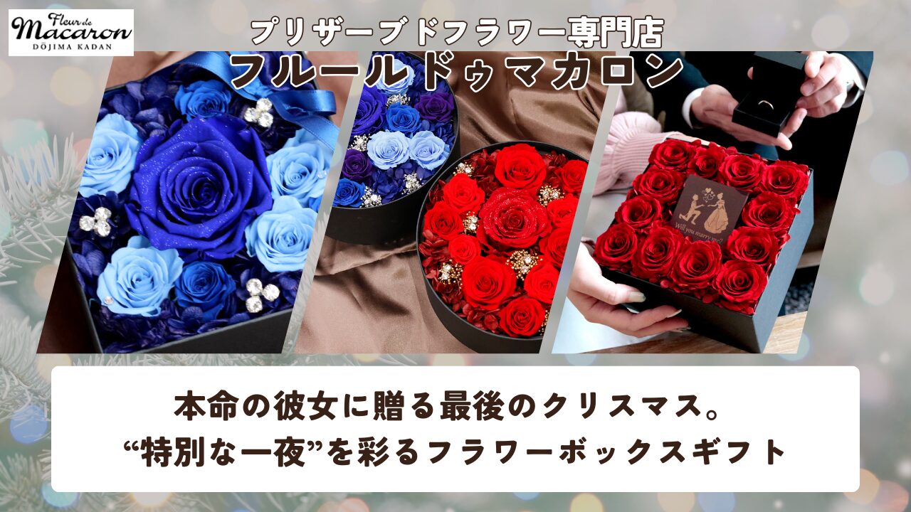 恋人と過ごすクリスマスは、一年の中でも特別な想いを伝えやすい大切な日。今年、“彼女と過ごす最後のクリスマスにしたい”“来年は新しいステージへ進みたい”と考える男性から、記念日のギフトとして注目されているのが花のプロが手がけるフラワーボックス。フルールドゥマカロンでは、特別な夜をより印象深いものにするための上質なフラワーボックスを展開し、恋人たちの節目の瞬間を彩っています。