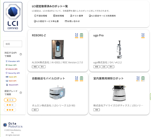 LCI(Linkage Communication Interface)認定プログラムは、株式会社Octa Roboticsが提供する、ロボットと建物設備を連携させるためのマルチベンダー対応インターフェース規格です。