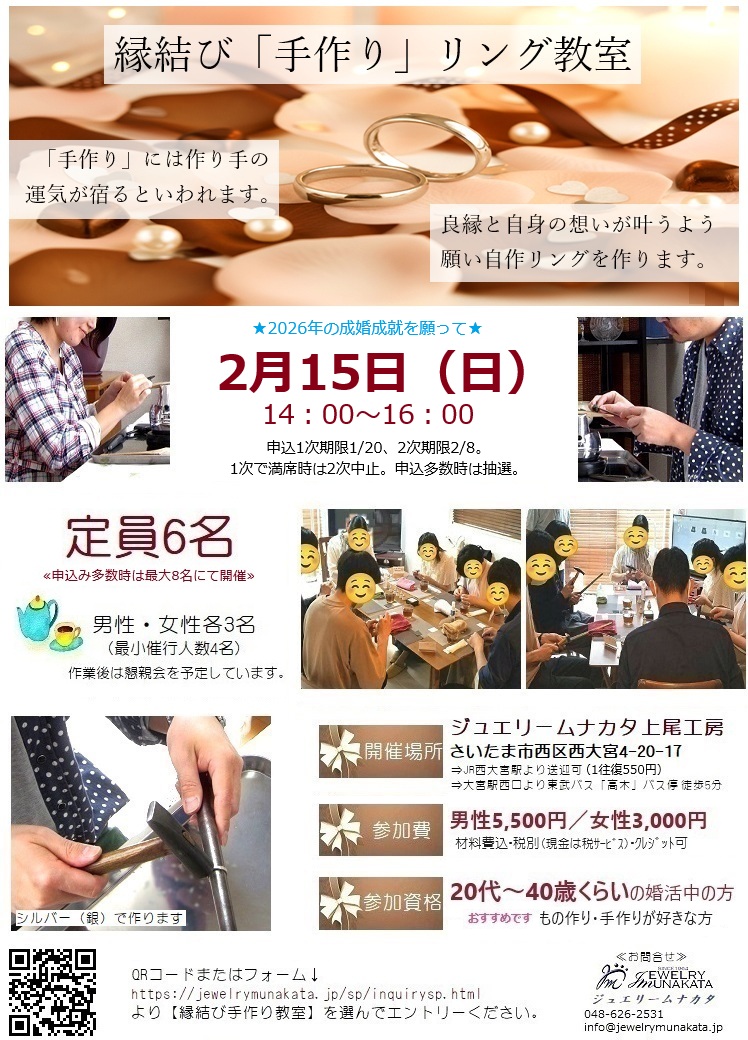 ≪2026年本気婚活!伝統技術も体験!成婚成就の願いをこめてお守りリングを作ろう≫
