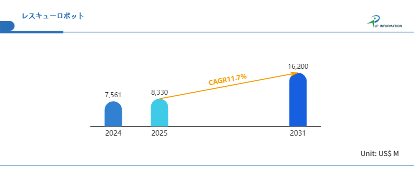 LP Information調査チームの最新レポートである「世界レスキューロボット市場の成長予測2025~2031」によると、2025年から2031年の予測期間中のCAGRが12.6%で、2031年までにグローバルレスキューロボット市場規模は17.95億米ドルに達すると予測されている。