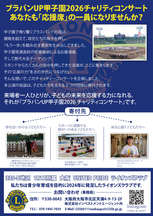 大阪UNITED PRIDEライオンズクラブ ブラバンUP甲子園2026 チャリティーコンサート