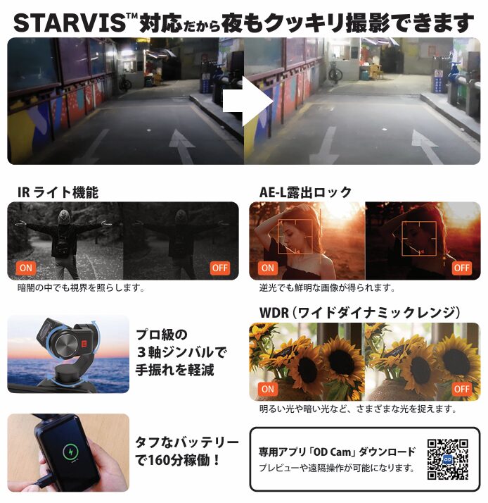 [SONY製CMOSセンサー搭載でSTARVIS™対応だから、暗闇撮影に強い!]