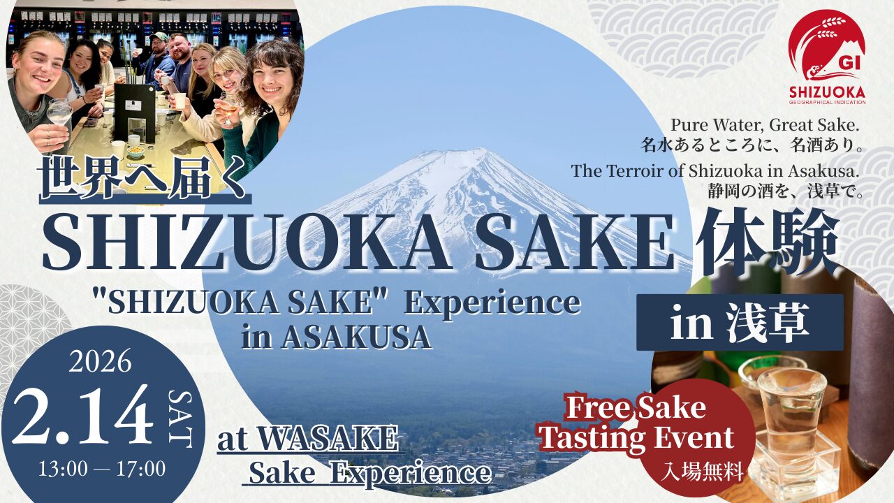 静岡県は、2026年2月14日(土)、東京・浅草の体験型日本酒施設「WASAKE Sake Experience」にて、静岡県産日本酒(GI静岡)の魅力を世界に発信するポップアップイベント「世界へ届く SHIZUOKA SAKE 体験 in 浅草 ~ “ SHIZUOKA SAKE ” Experience in ASAKUSA ~」を開催いたします。