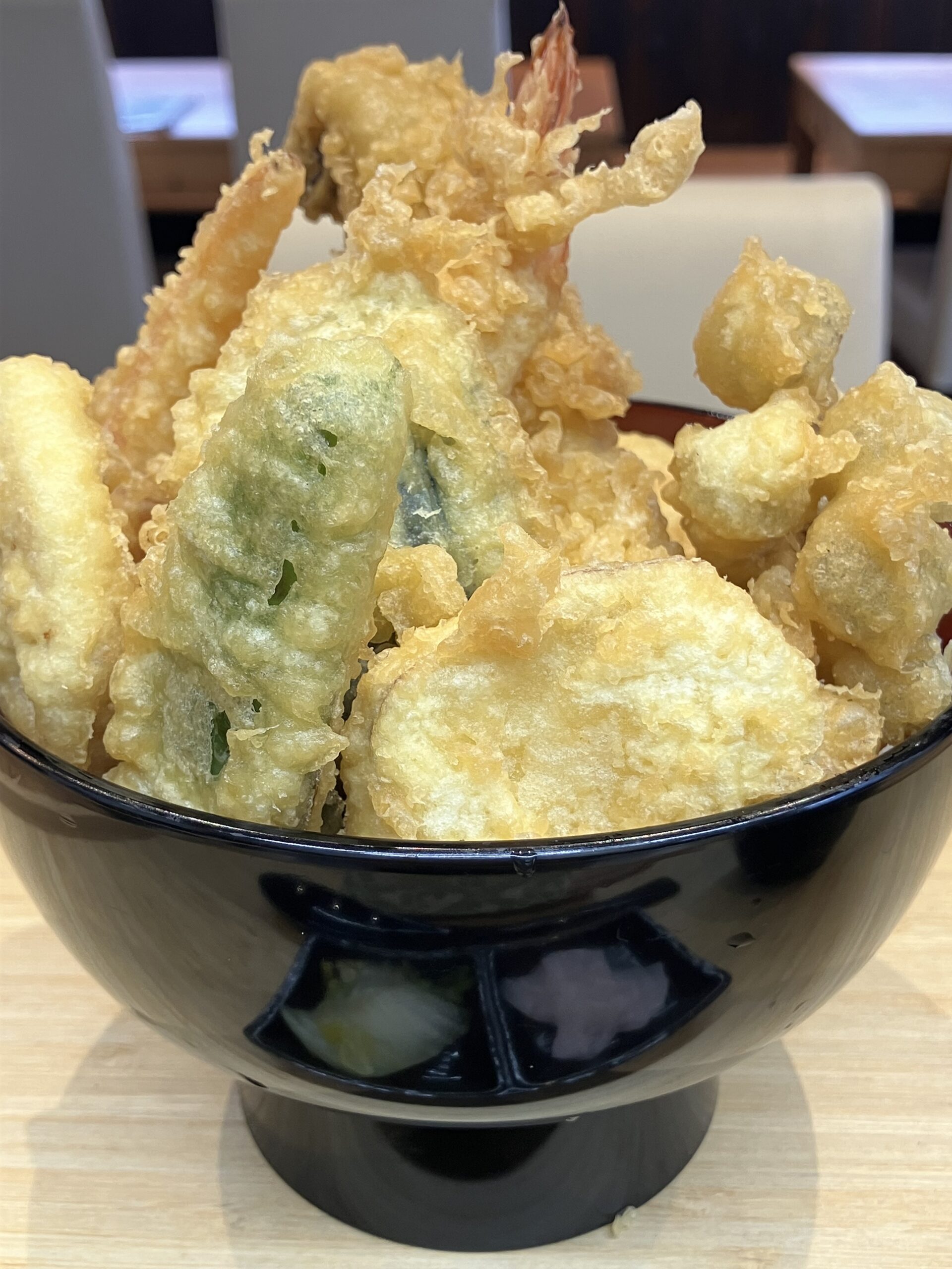 天丼はキス、穴子や野菜をバランスよく盛り込み、1100円という価格で満足していただける内容に。海老天丼は、ぷりぷりの海老3本を主役に、食べ応えと贅沢感を大切にしました。