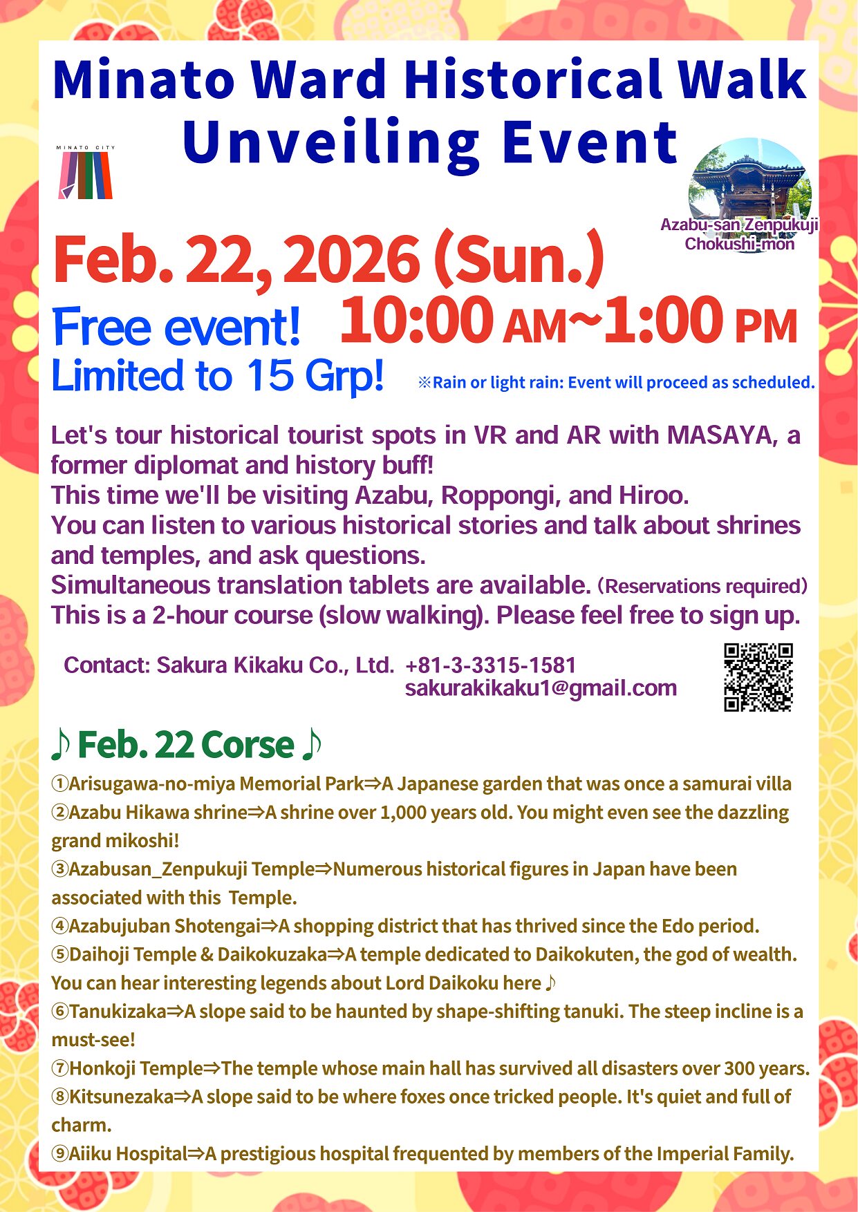 Sakura Kikaku Co., Ltd. (Head office: Suginami ward, Tokyo / Representative: Sakura Kitagawa) has created an original web map using VR and AR, selecting 16 carefully selected locations in Minato ward, which is rich in historical sites, with the theme of widely communicating "Japanese spirituality" and "what kind of people the Japanese are" both domestically and internationally.