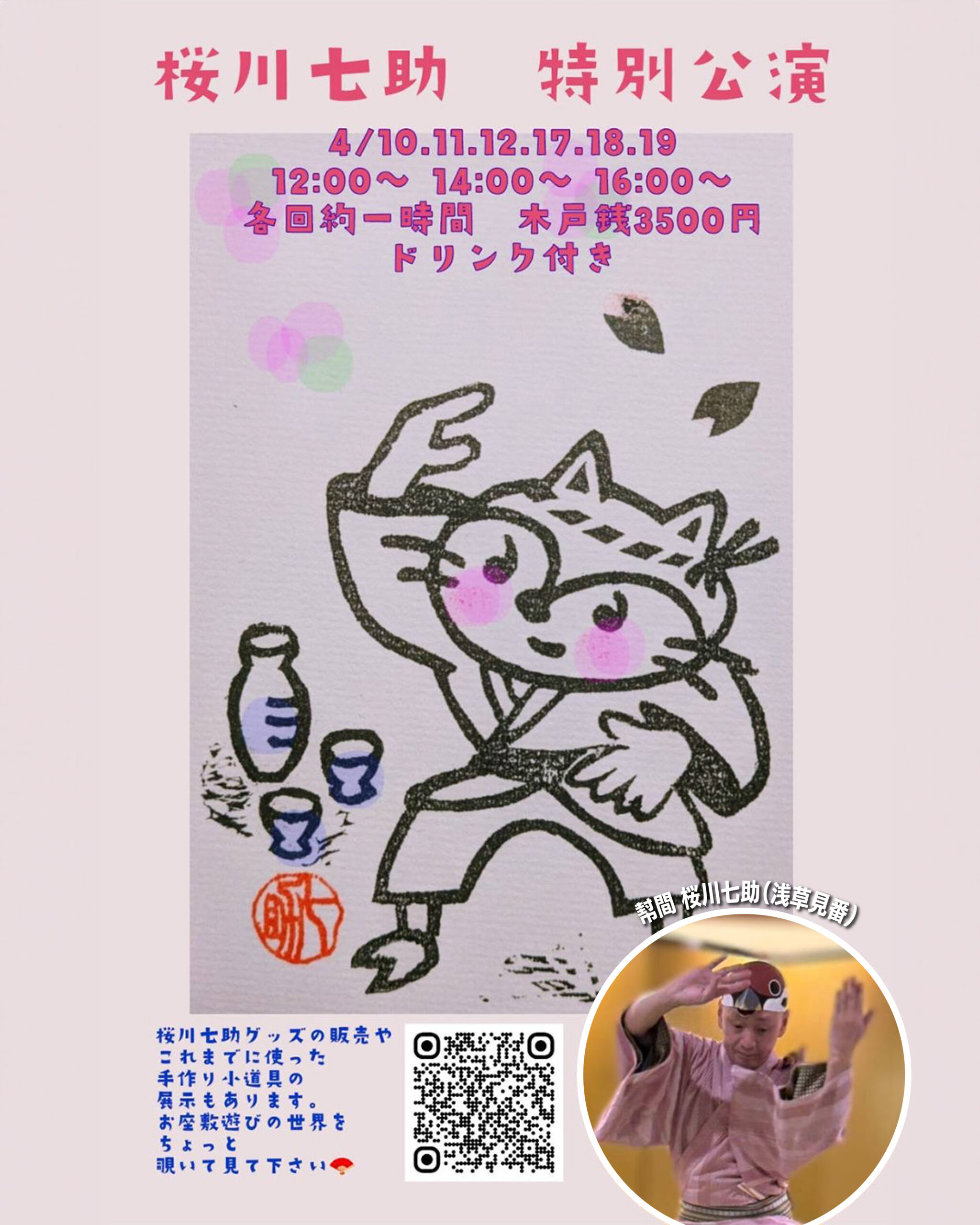 Gallery NOOOGでは、浅草見番に所属する幇間・桜川七助による特別公演を開催いたします。
