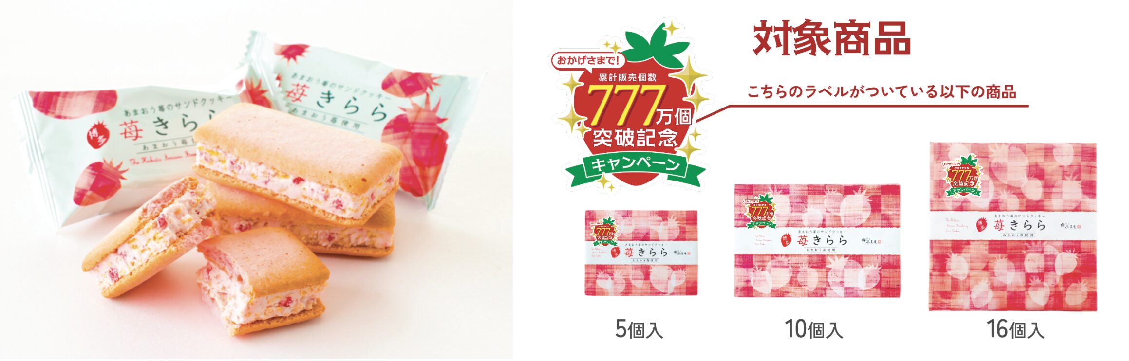 株式会社風美庵(福岡県福岡市/代表取締役社長:河越 久)のあまおう苺サンドクッキー 「苺きらら」は、2017年の発売以来、福岡土産として多くのお客様にご支持いただき、累計販売数777万個を突破しました。
