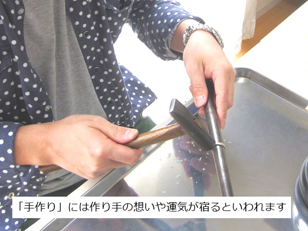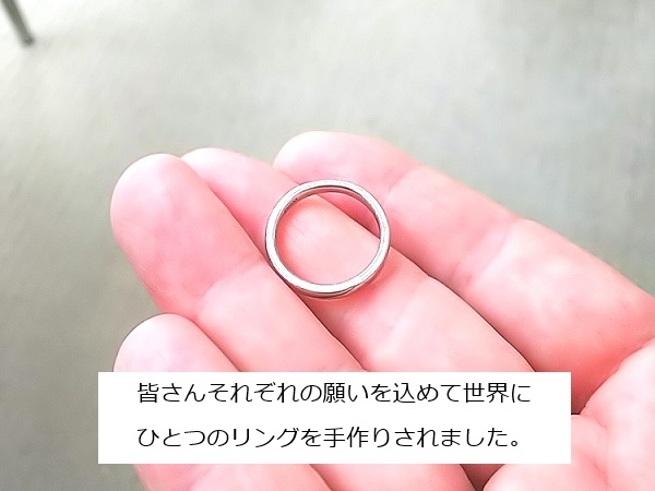 先日、当店の伝統技術を体験しながら出会いのきっかけと結婚への願いが叶うよう願って自作りリングを作っていただきました。