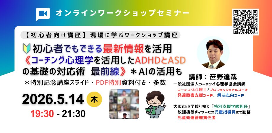 ★脳特性を理解し、責めずに整える支援【コーチング心理学を活用したADHDとASDの基礎・基本の対応術】2026年5月