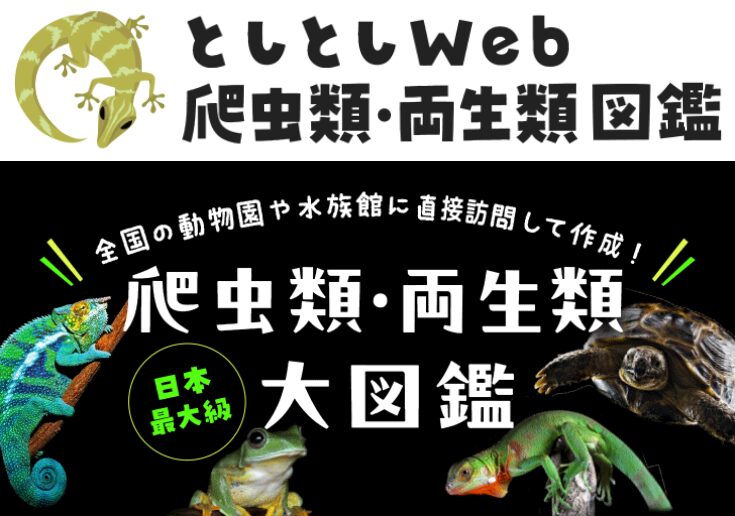 としとしWeb爬虫類・両生類図鑑は、全国の動物園や水族館などに直接訪問して作成した400種以上の動物を掲載した日本最大級の爬虫類と両生類の大図鑑です。