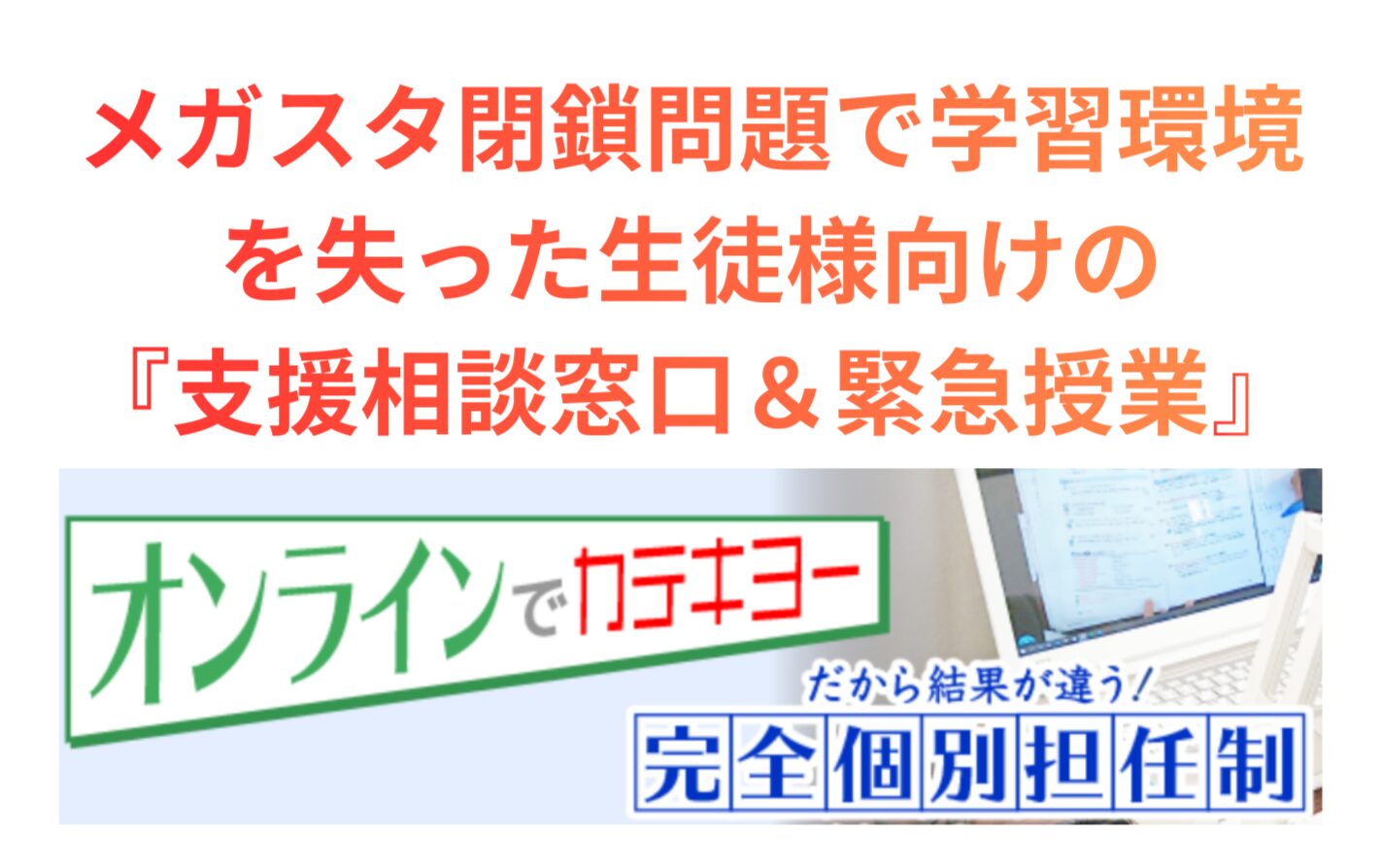 メガスタ閉鎖問題から『支援相談&緊急授業』実施 株式会社KATEKYOグループ