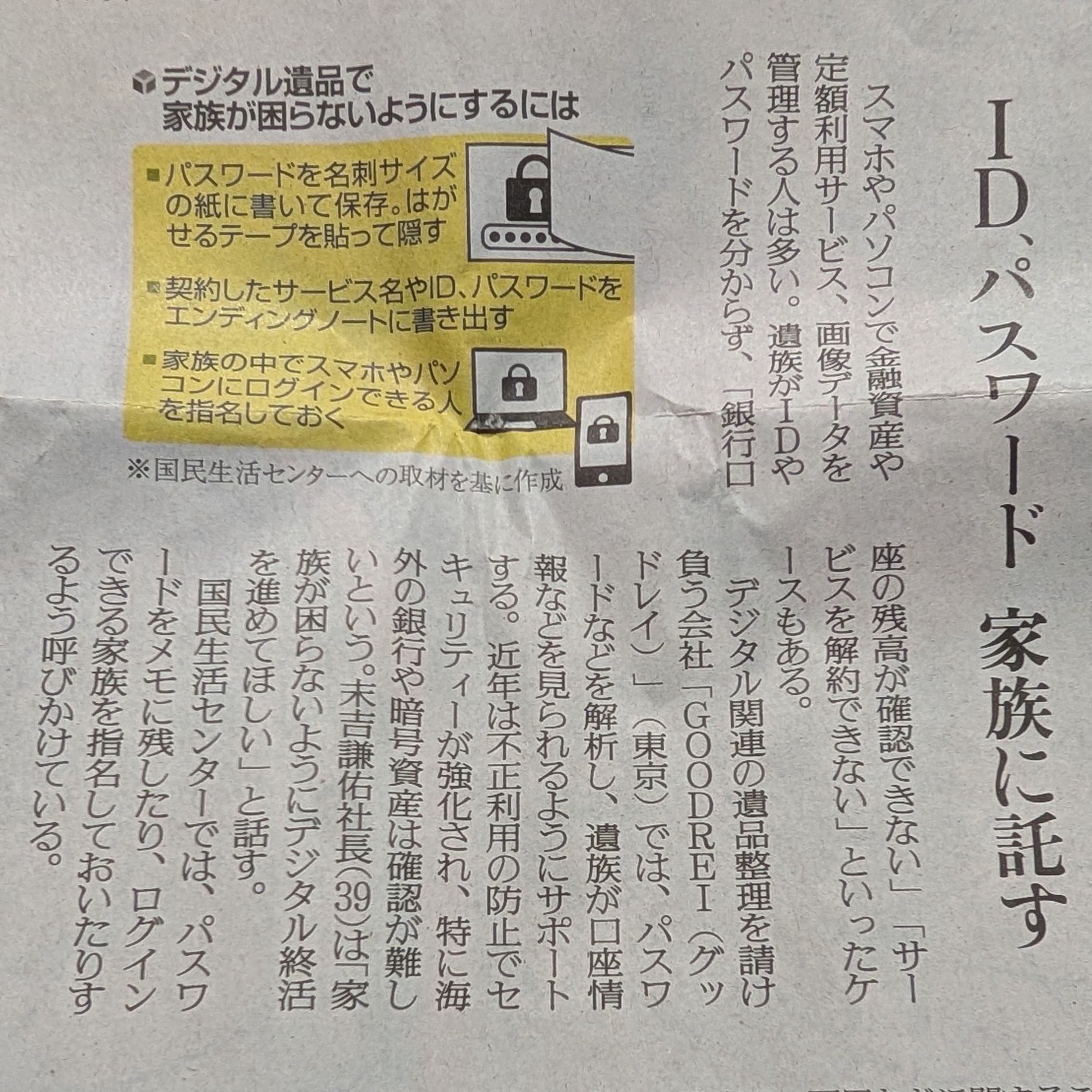 2026年2月28日の読売新聞の朝刊に、デジタル遺品に関する取り組みが新聞媒体に掲載されました。