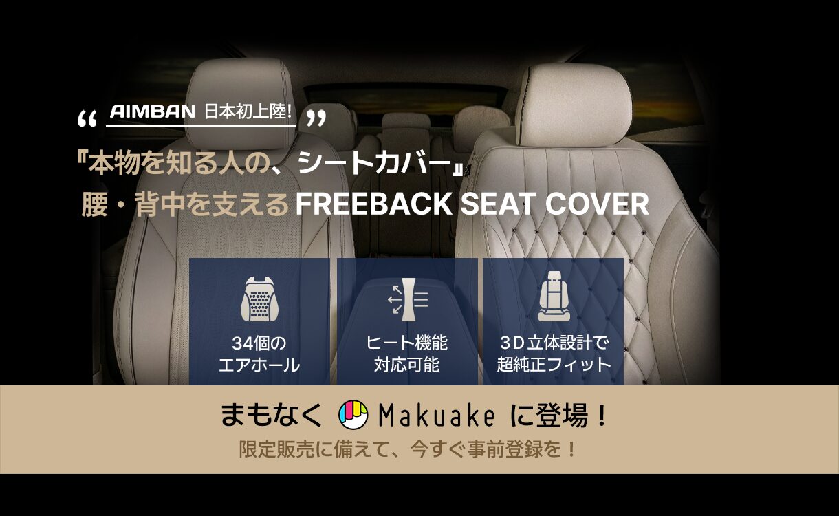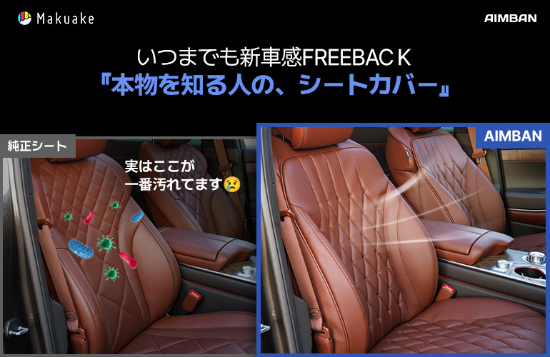 カー用品ブランドAIMBANは、純正の見た目を損なわない「純正風シートカバー FREEBACK」をクラウドファンディングサイトMakuakeにて先行販売開始しました。後付け感のないデザインと3D立体構造により、長距離ドライブでも快適な座り心地を実現したカー用品です。