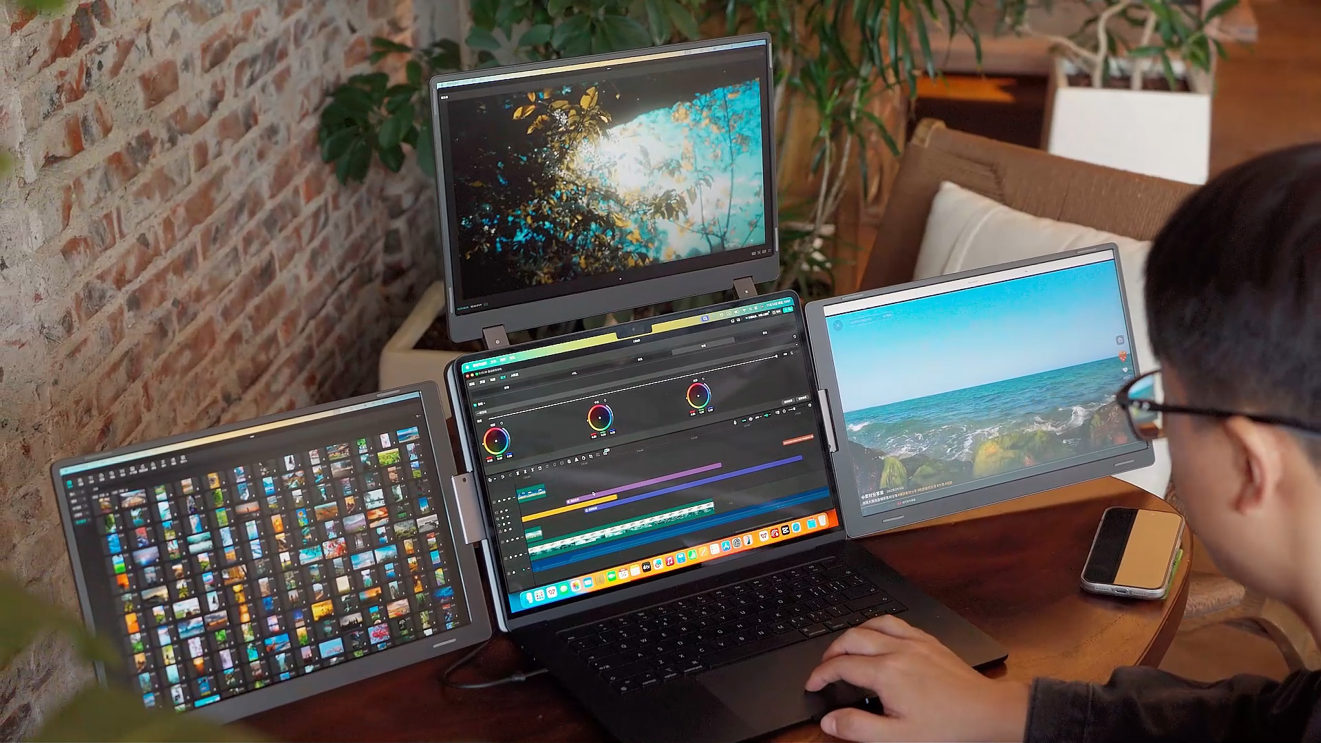 「FOPO S780Pro」は、3つのモニターを搭載しながらも折りたたみ式を採用しており、使用しないときはコンパクトに収納できるポータブル設計です。ノートPCと一緒に持ち運びしやすく、自宅、オフィス、カフェ、出張先など、さまざまな場所で活用できます。