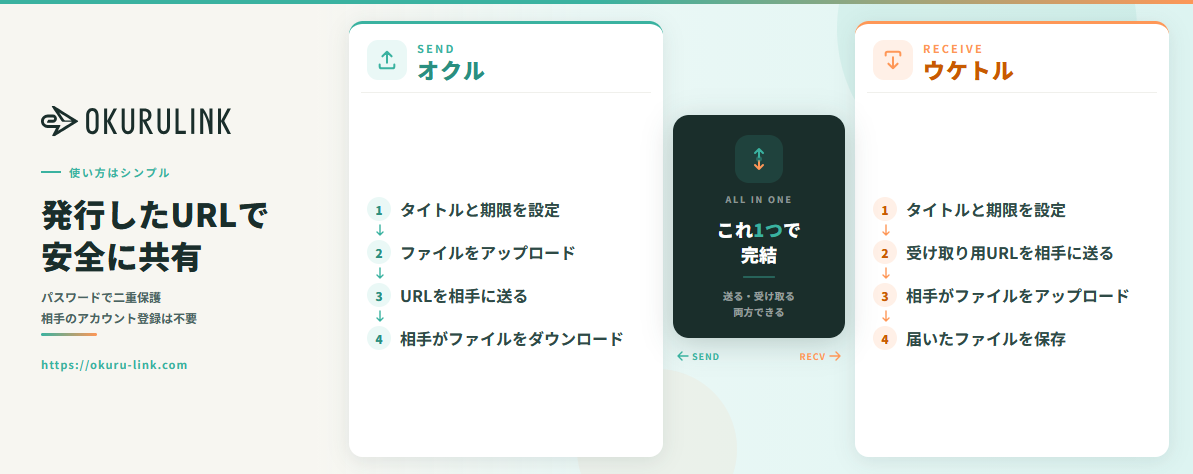 「オクルリンク」は、こうした課題を解決するために開発されたファイル転送サービスです。