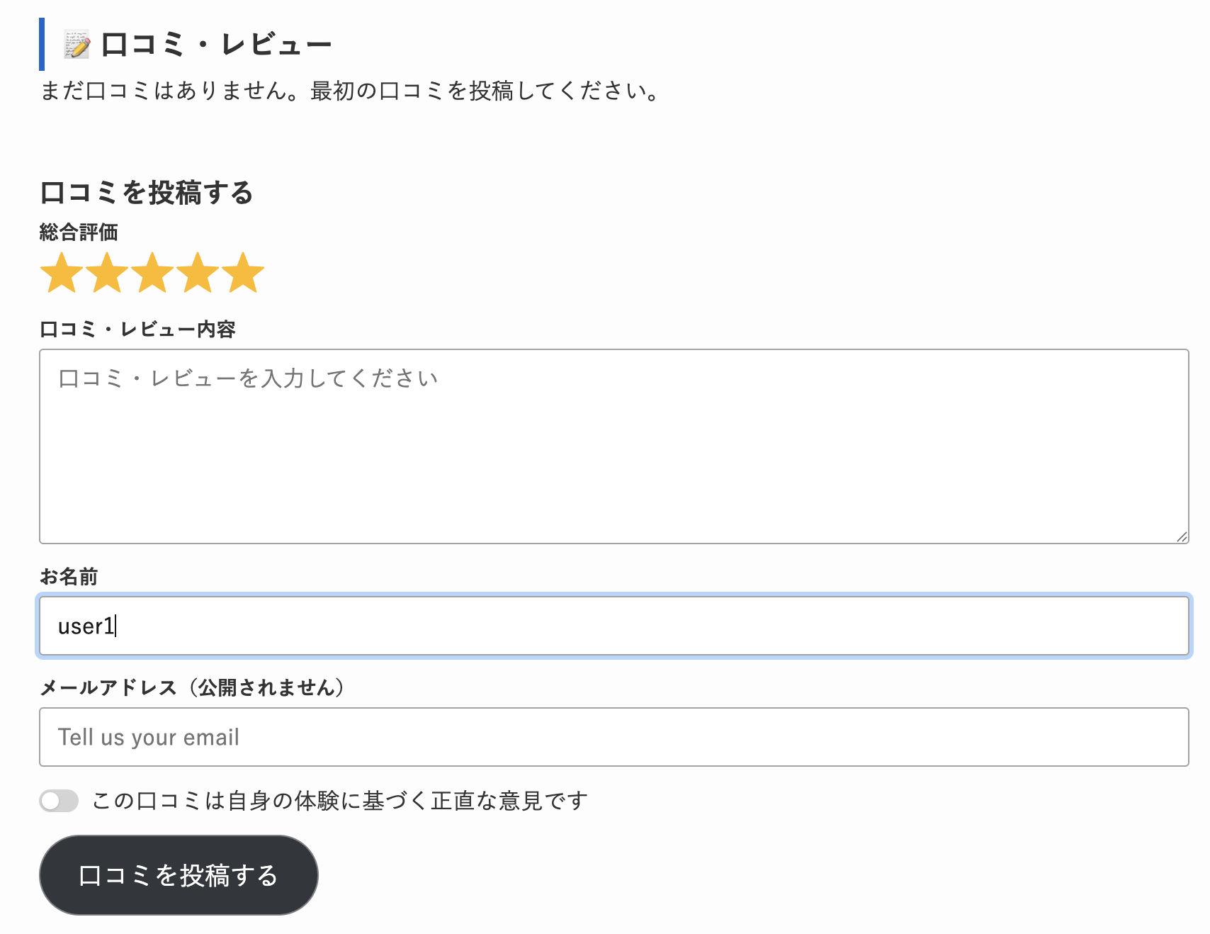 スパム対策・承認制を導入し、信頼性の高い口コミ環境を整備しています。
