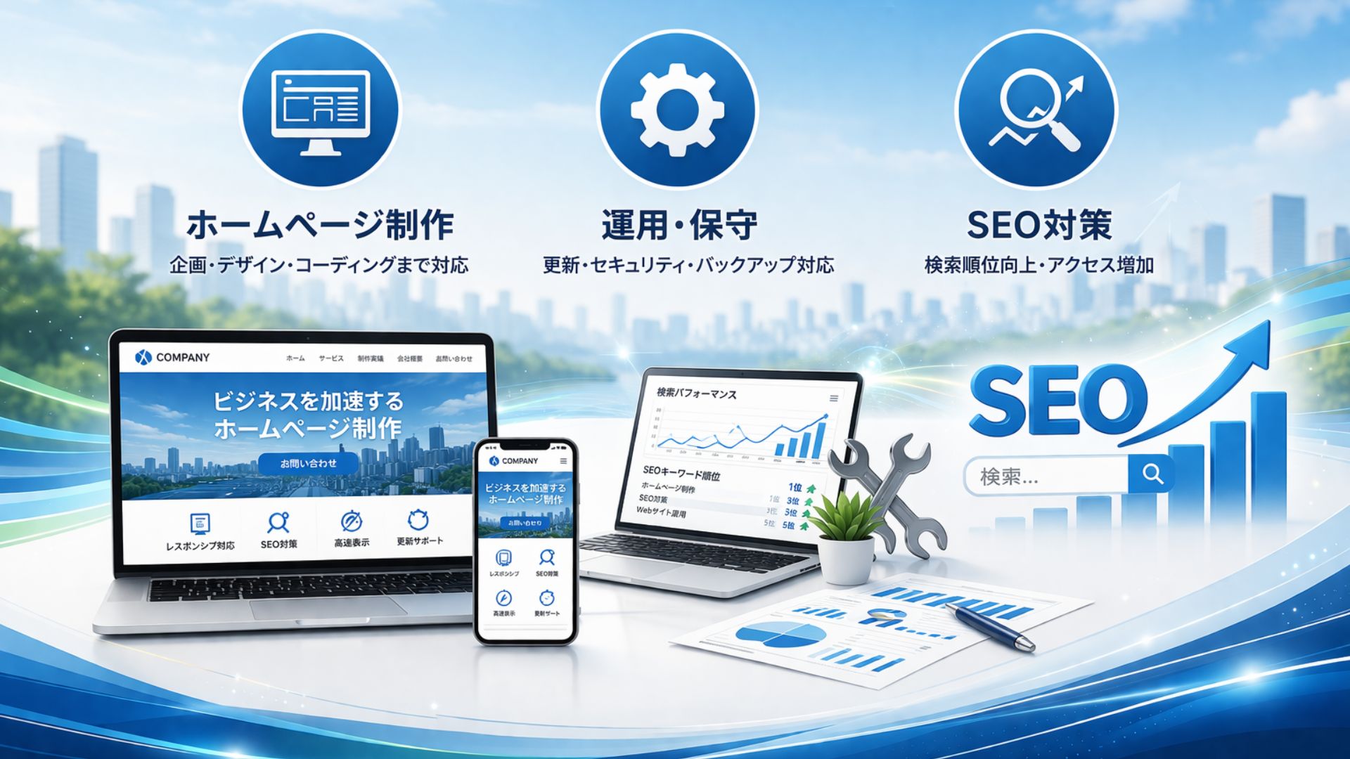- ホームページ制作、運用、SEO対策、WEBマーケティング