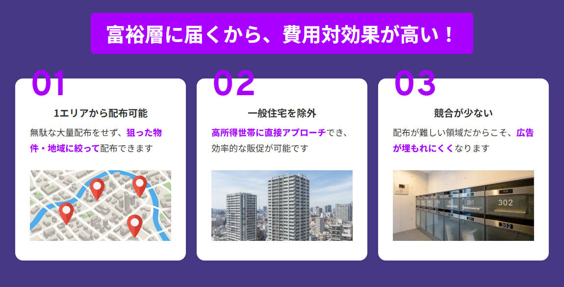 富裕層・高所得者層にアプローチ タワーマンション特化のポスティングサービス