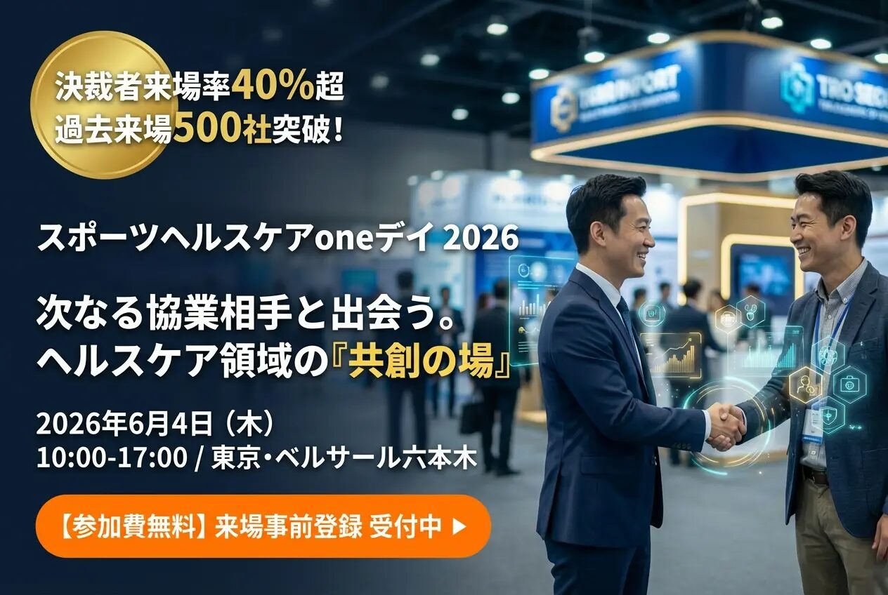 【来場事前登録開始】決裁者来場率40%超!単なる展示会ではなく新規事業が生まれる共創の場へ。ヘルスケア×スポーツの完全BtoBイベント「スポーツヘルスケアoneデイ2026」6月4日(木)六本木で開催