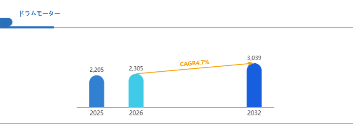 Global Reports調査チームの最新レポート「グローバルドラムモーター市場規模、主要企業シェア、ランキング分析レポート【2026年版】」によると、2026年の2305百万米ドルから2032年には3039百万米ドルに成長し、2026年から2032年の間にCAGRは4.7%になると予測されています。
