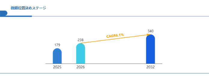 Global Reports調査チームの最新レポート「グローバル微細位置決めステージ市場規模、主要企業シェア、ランキング分析レポート【2026年版】」によると、2026年の238百万米ドルから2032年には340百万米ドルに成長し、2026年から2032年の間にCAGRは6.1%になると予測されています。