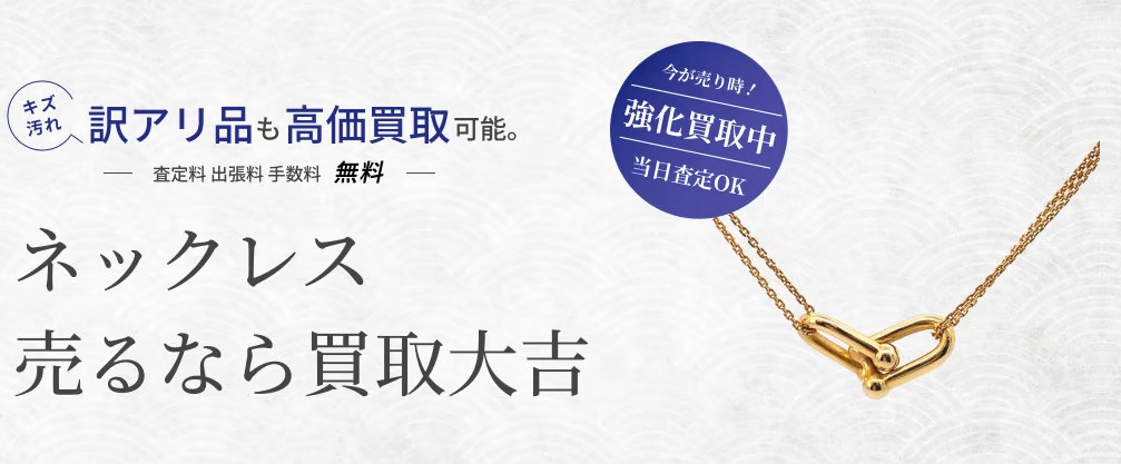 買取大吉には、知識豊富なプロの鑑定士が多数在籍しており、日々変動する相場の傾向を考慮した買取金額をご提示させていただきます。さらにデザイン性も含めしっかりと鑑定するため、グラムや素材以外の観点で高価買取が可能となっております。