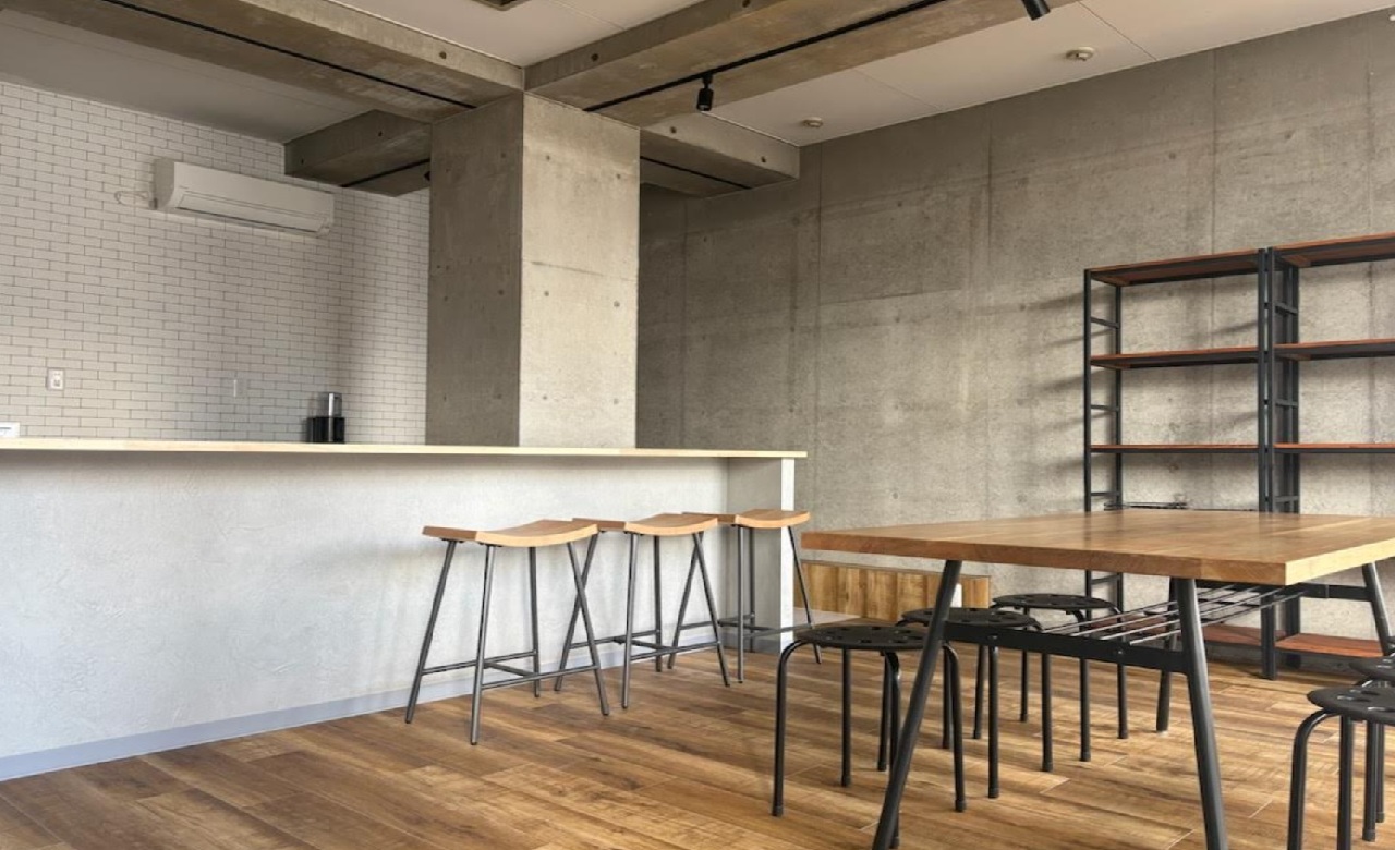 コンクリートの無機質な質感と、木目の温もりが心地よく調和した店内