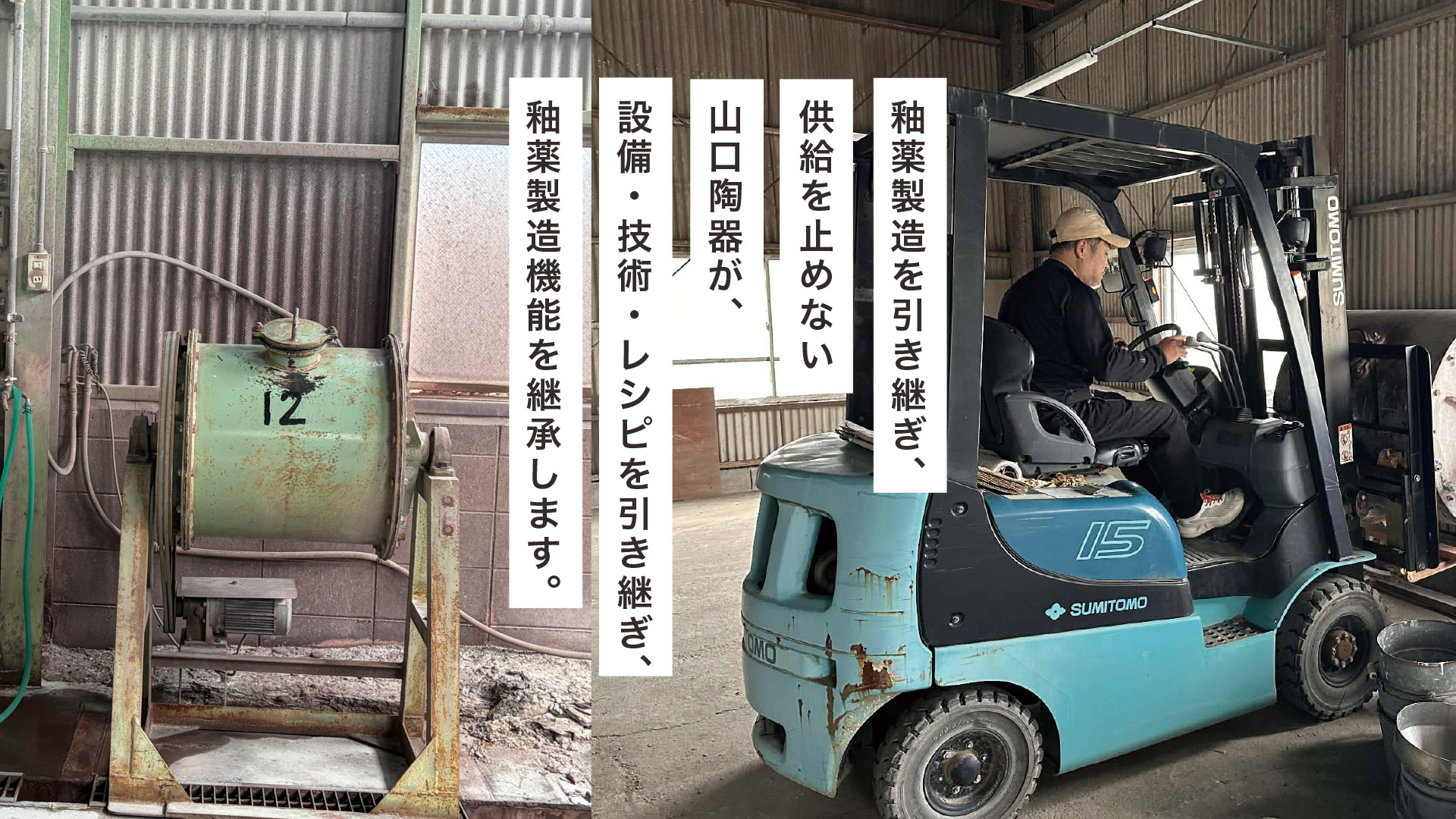 山口陶器では、これまで自社内での釉薬対応を行っており、自社の製造においては大きな支障はなかった。しかし、産地全体を見たとき、釉薬の供給が途絶えば、ものづくりそのものが成立しなくなる。産地が存続しなければ、その価値もまた失われてしまう。山口陶器のミッションは、「新しい地場産業のかたちをつくる」こと。そのためには、自社だけで完結するのではなく、産地全体の基盤を守り、未来につなぐ必要がある。こうした考えから、自社のためではなく、産地の存続と価値を守るために、釉薬製造事業の継承を決断した。