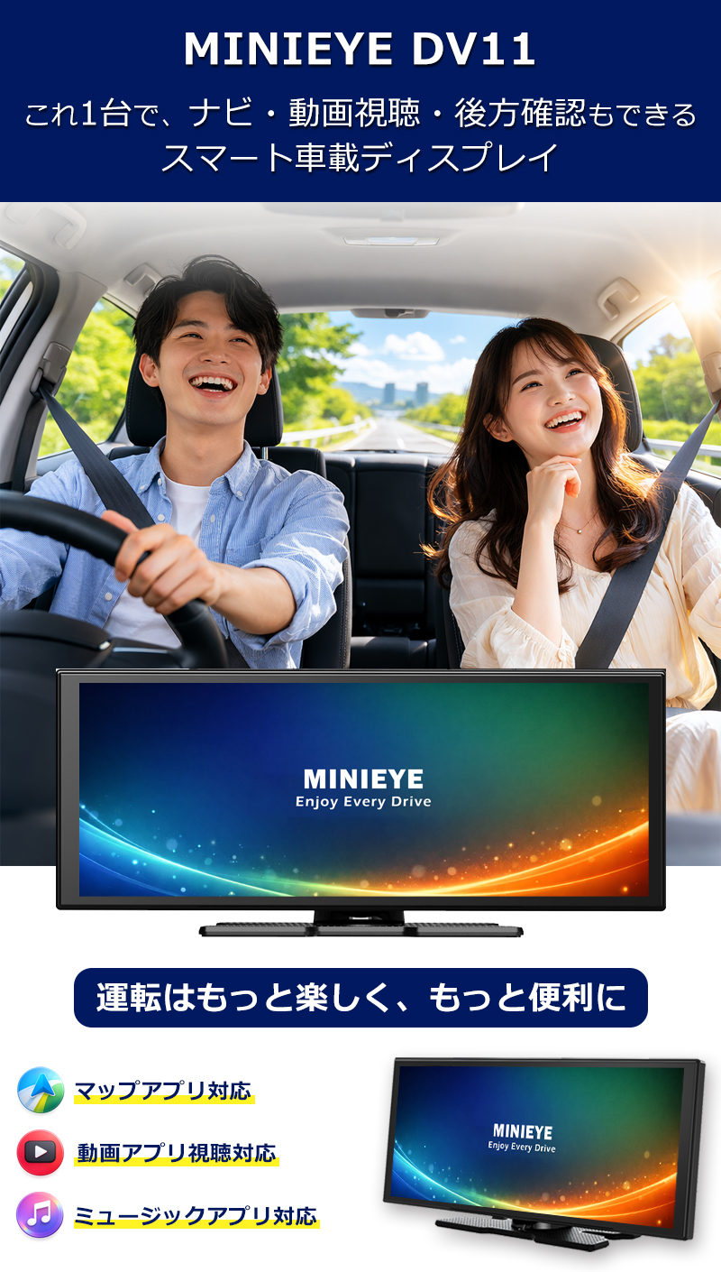 ナビも動画も1台で。11.4インチ車載スマートディスプレイ「MINIEYE DV11」がMakuakeで先行公開へ