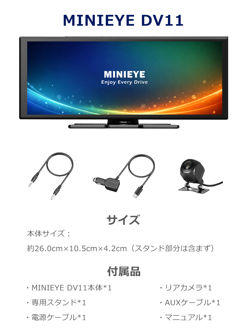 そこでMINIEYE DV11は、11.4インチの大画面を採用し、地図表示や各種画面をより見やすく、より使いやすくしました。