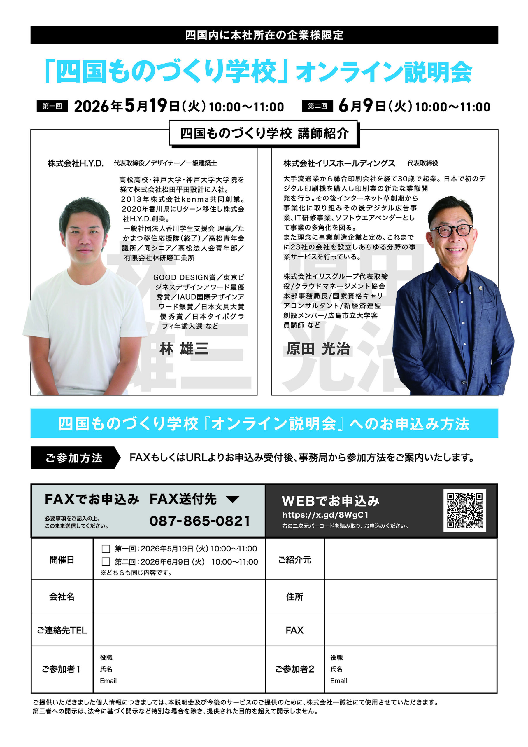 株式会社一誠社(本社:香川県)が、2026年7月より「四国ものづくり学校」を開講いたします。