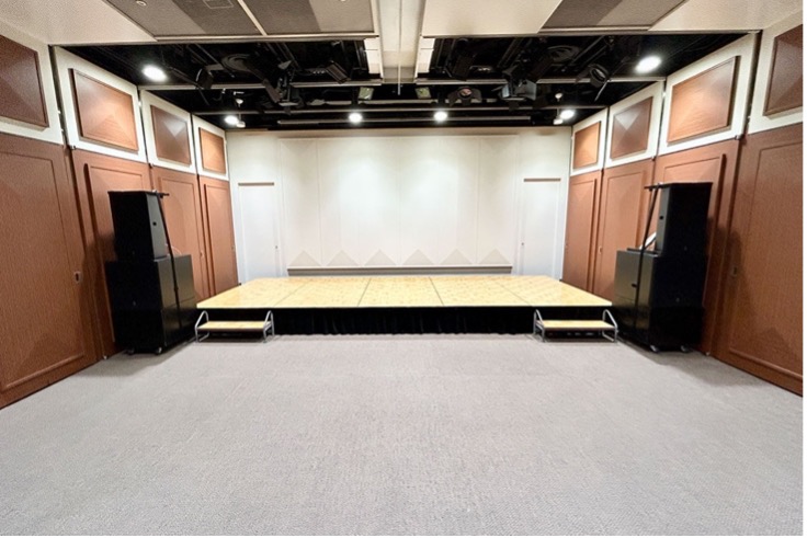 設備 :控室(有料)、空調設備、電源、スクリーン、チェア(100脚)、テーブル(20台)、ホワイトボード