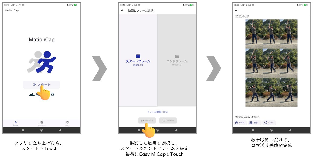 MITTSU凸合同会社(本社:静岡県三島市幸原町2丁目16番45号、代表社員:平田祐一郎)は、スマートフォンで撮影した動画からコマ送り画像を自動生成し、スポーツのフォーム改善を支援するアプリ「MotionCap」において、大型アップデートを実施しました。新たにキーフレーム機能や動き等間隔機能を追加し、より直感的で精度の高い動作分析が可能になりました。