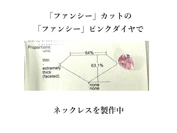 「ファンシー」カットの「ファンシー」ピンクダイヤモンドで「ファンシー」なオーダーメイド・ネックレスを製作中。