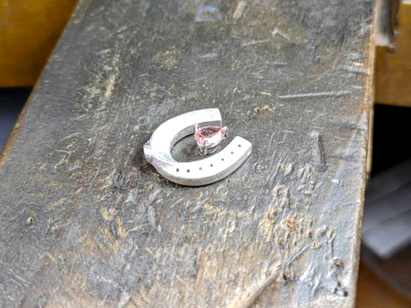 【馬蹄 ネックレス】ファンシーカットピンクダイヤでネックレス製作中