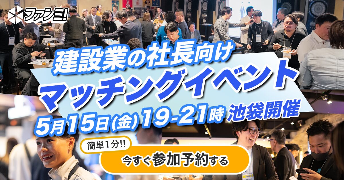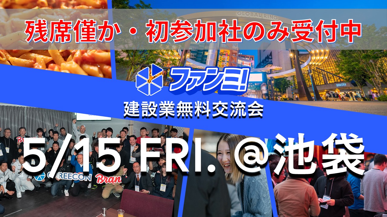 建設業無料交流会:5/15㈮19時~21時@池袋(東京)にて開催!