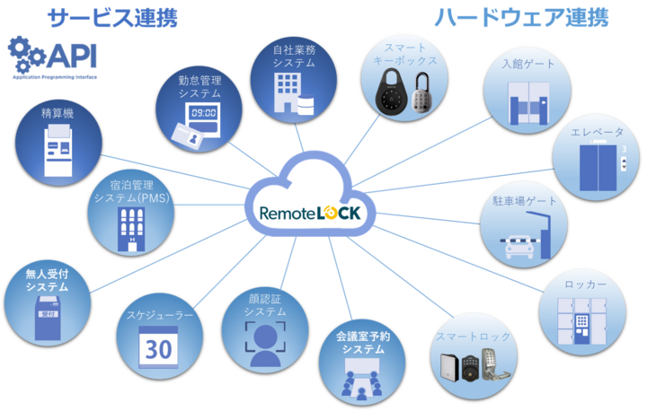 APIを介し、各種予約サービスや業務システム、ハードウェアと連動した暗証番号キーの自動発行・通知を行うことで、施設のカギの受け渡しの手間や窓口業務の煩雑さを低減できるアクセスコントロールのオープンプラットフォームです。