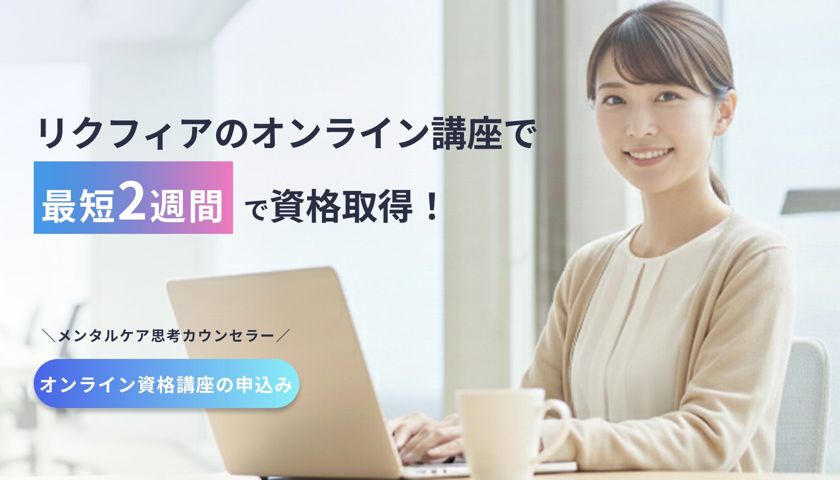 メンタルケア思考カウンセラー資格をリクフィアのオンライン講座…